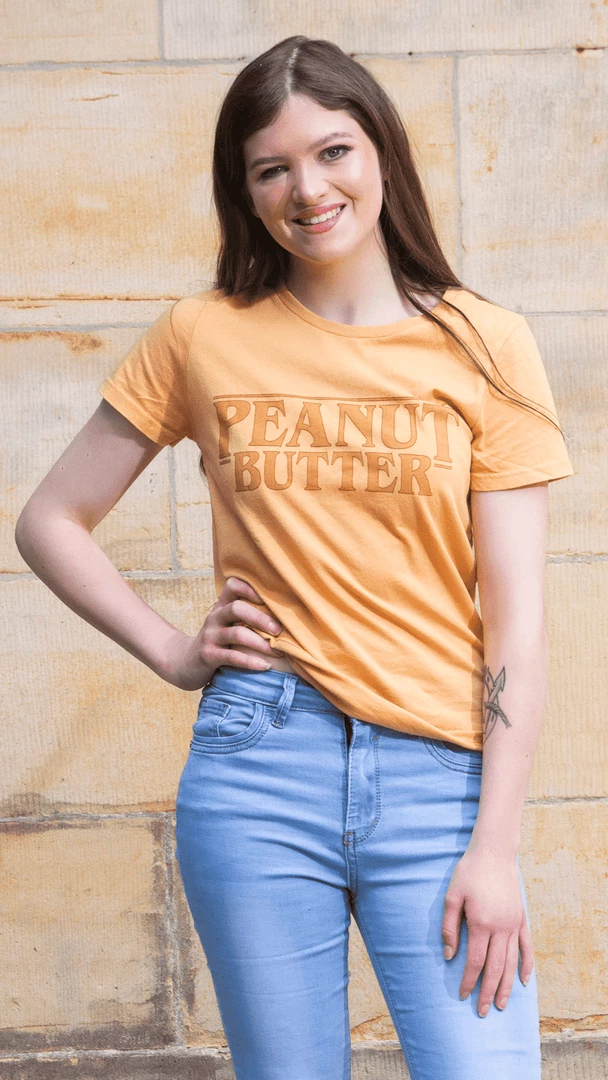 This Peanut Butter slogan T will quickly become your newest off-duty obsession. Featuring ultra-soft material + short sleeves – team with sporty shorts + sneaks’ to level up your laid-back look !