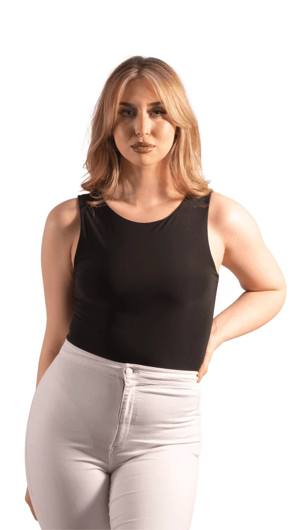 Check out this bangin’ black slinky bodysuit – a wardrobe ESSENTIAL ! Pair with just about anything, you can dress it up + feel fierce, or keep it simple for some super stylish slouchy vibes !
