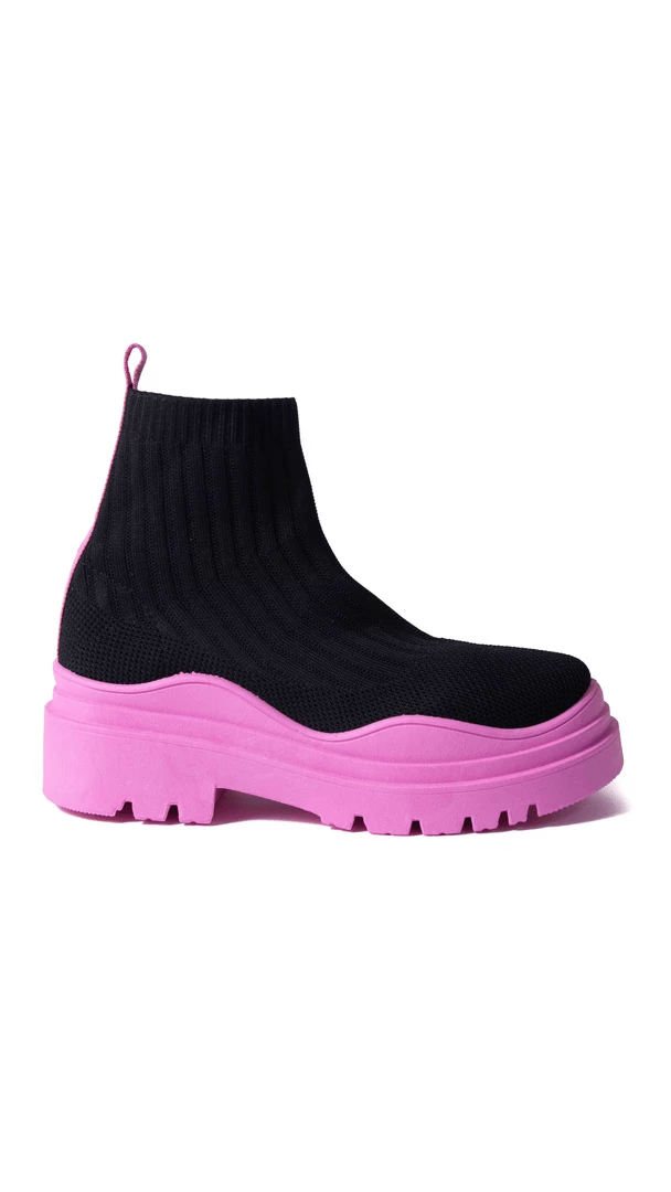 Step into the season in style with our Black Wave Sock Boots, featuring a knitted material to keep you cosy + a unique wave sole design. Team with your fav leather look leggings + chunky knit for effortless chic vibes !