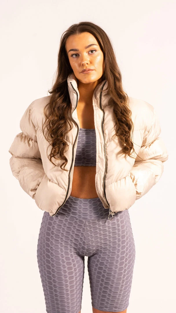 Looking for a cute crop bomber to go with everything this winter ? This nude bomber jacket is for you, our air filled technology moulds to your shape without bulking to keep your look on point whatever the weather!