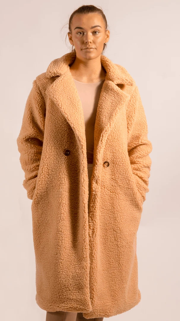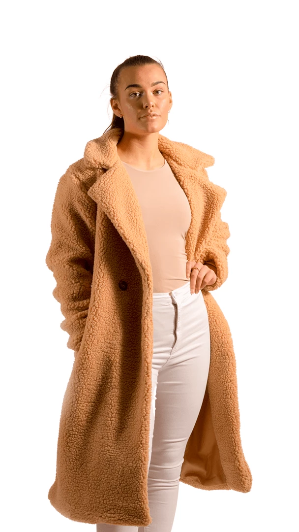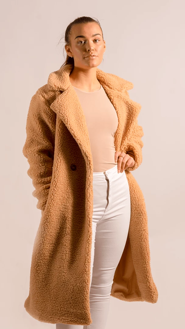 Don’t compromise on style in winter, stay cosy but keep it fashion forward with our camel longline borg teddy coat. Layer on top of bodysuits + jeans or your fave LBD + strappy heels – keeping your look effortlessly chic !