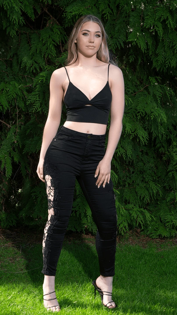 Add some sass to your denim ‘drobe with these statement cut out skinny jeans. Complete with leg lengthening lace detailing + a booty bustin’ fit – what’s not to love ?!