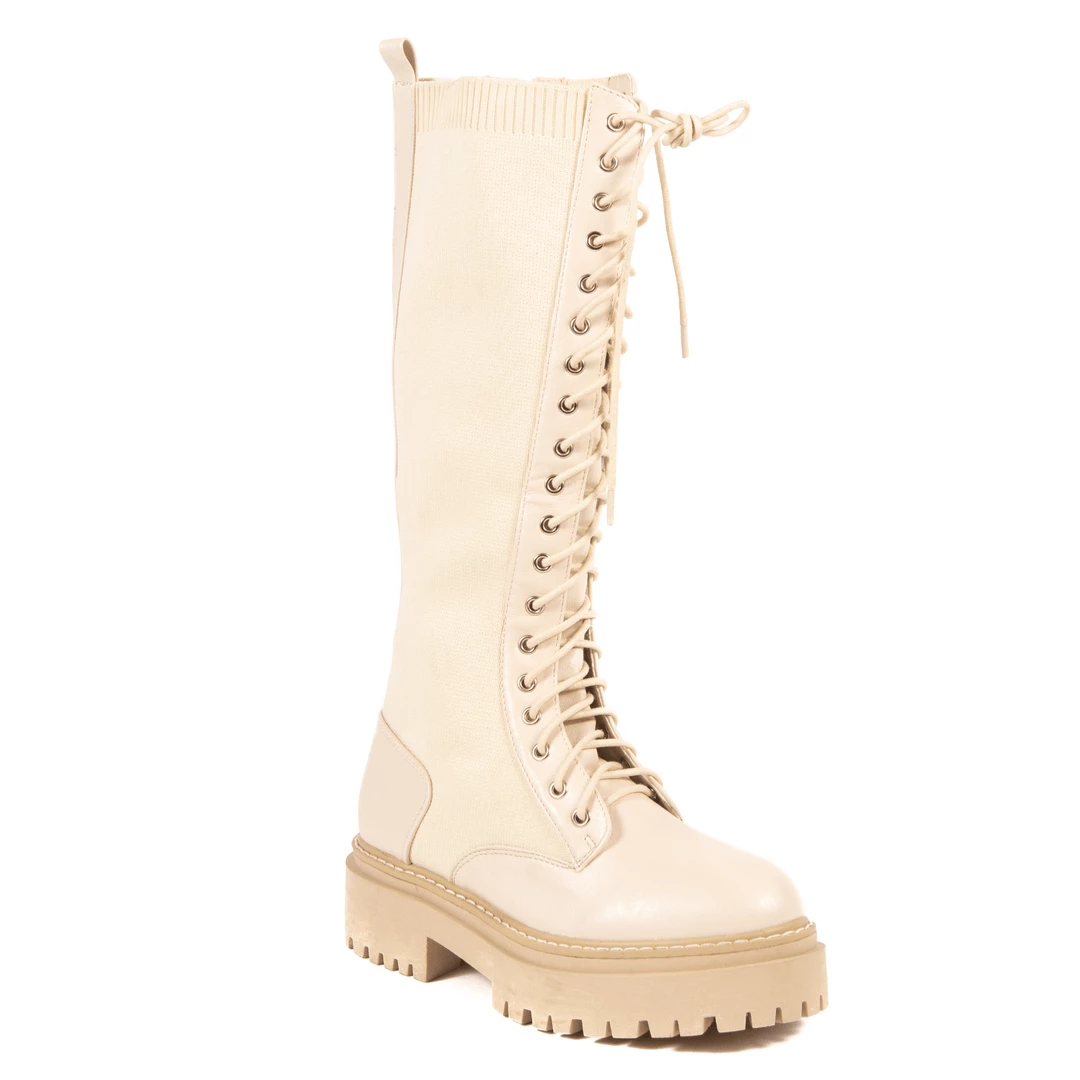 Be the first to review “Bubu Cream PU Knitted Lace Up Sock Boot Shoes” Cancel reply