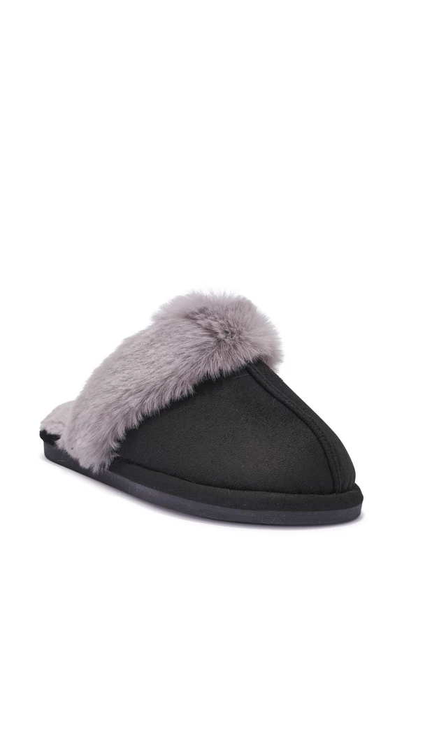 Stay in in style this chilly season with our Black Fluffy Slippers, with a chic inner grey fluff.  A loungewear ESSENTIAL for your winter wardrobe. Team with matching PJ’s for ultra-cosy vibes – nights in just got a whole lot better !