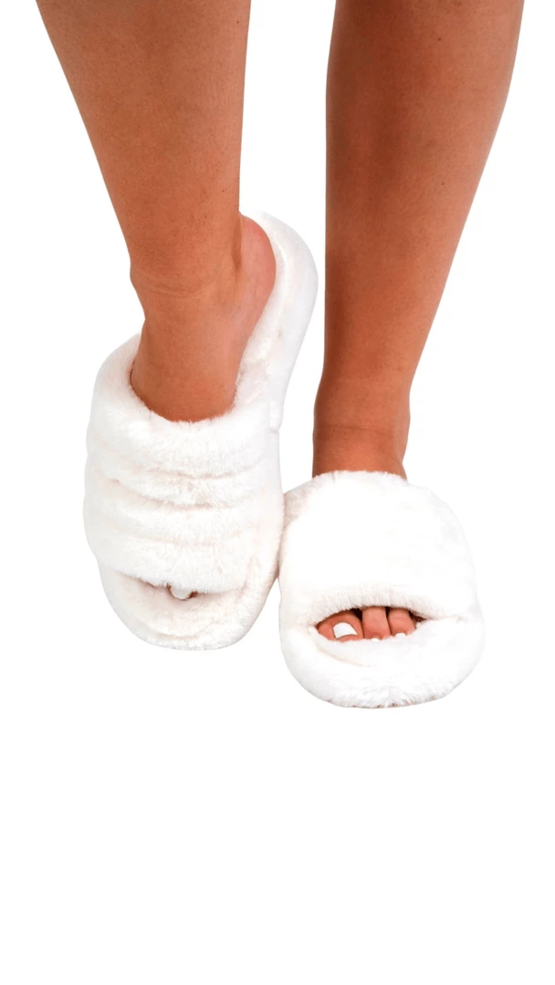 Who isn’t obsessed with a new pair of furry sliders? A must have footwear essential with a cosy twist – these white fluffy sliders are must-haves for lazy days + cosy nights in. The perfect addition your shoe-drobe this season!