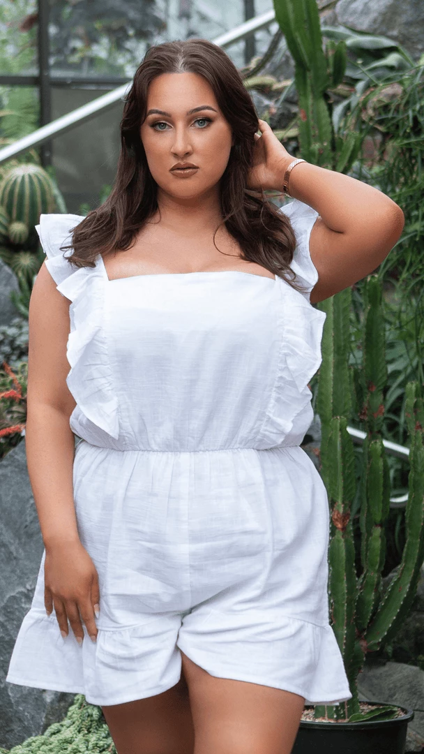 A floaty white playsuit you can’t live without this season ! Featuring a flattering cut, Â with lush frill straps that make it easy to style with shades, a cross body bag and some espadrilles for that ‘on point’ BBQ fit! A style to suit all body shapes!Â