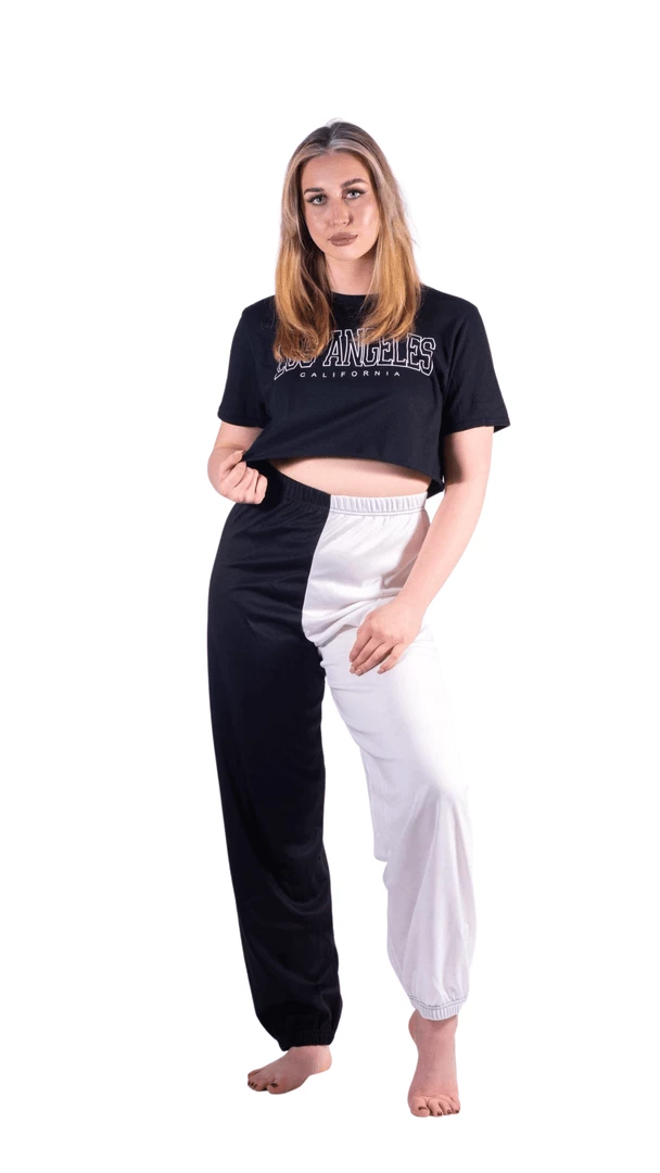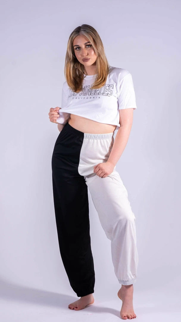 Get involved in the monochrome movement with these High Waisted Two Tone Joggers – a chilly season essential. Featuring contrast black + white material and a flattering high waisted fit. Team with a white cropped T + some chunky trainers for the ultimate lazy day look !