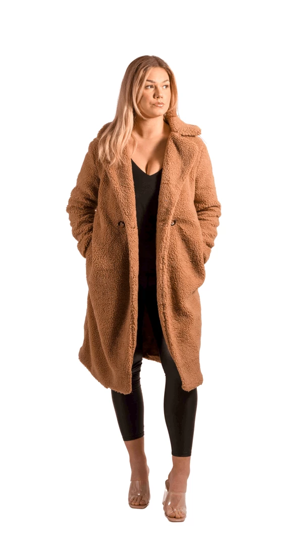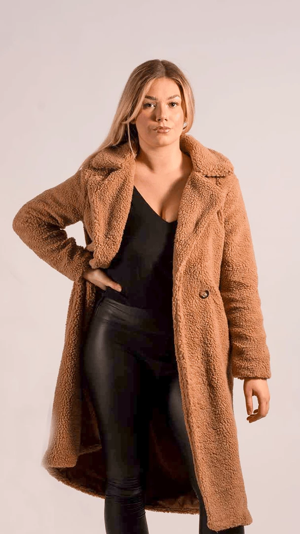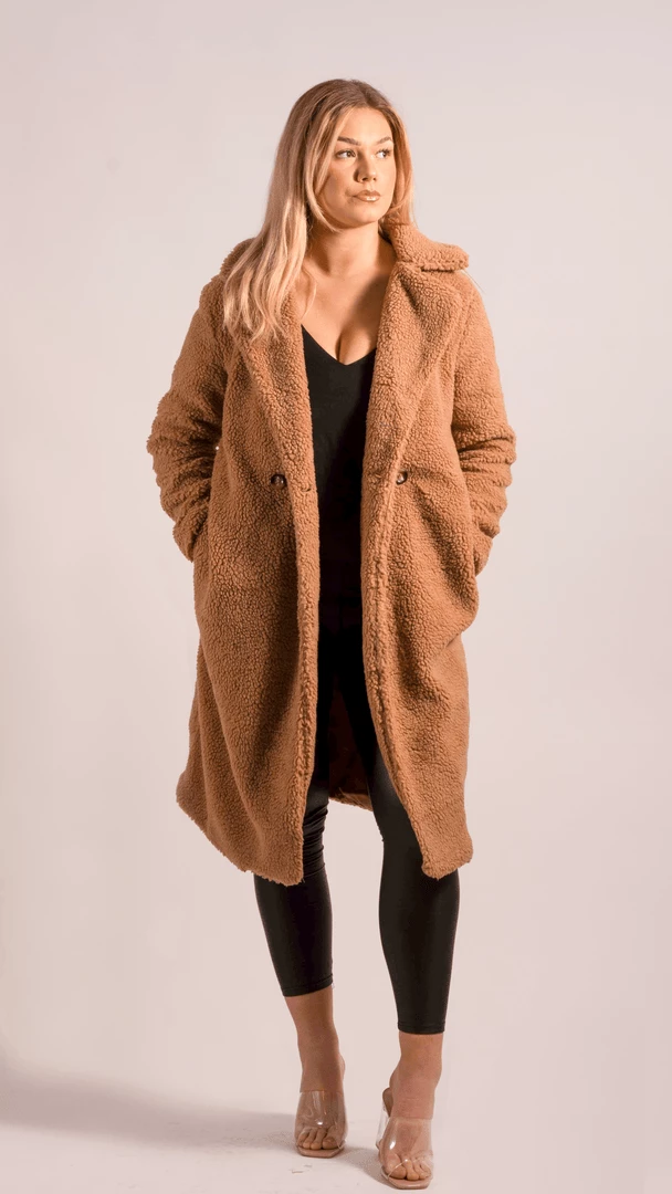 This Mocha Longline Borg Teddy Coat will keep you warm + on trend all season long. Pair with black jeans + your fav body suit for a killer ‘fit that’ll have you slaying the game all day !