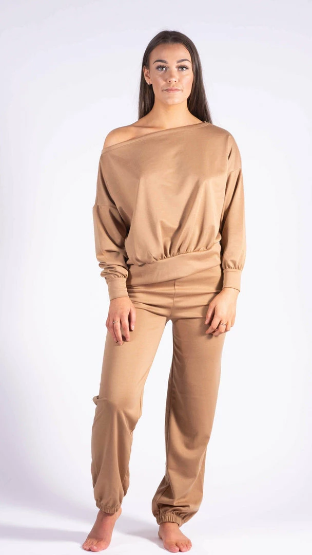 Loungewear season has never looked so good! Just because you are staying home, that doesn’t mean you shouldn’t do it in style ! The on trend soft camel coloured two piece will have you adding to basket…Â