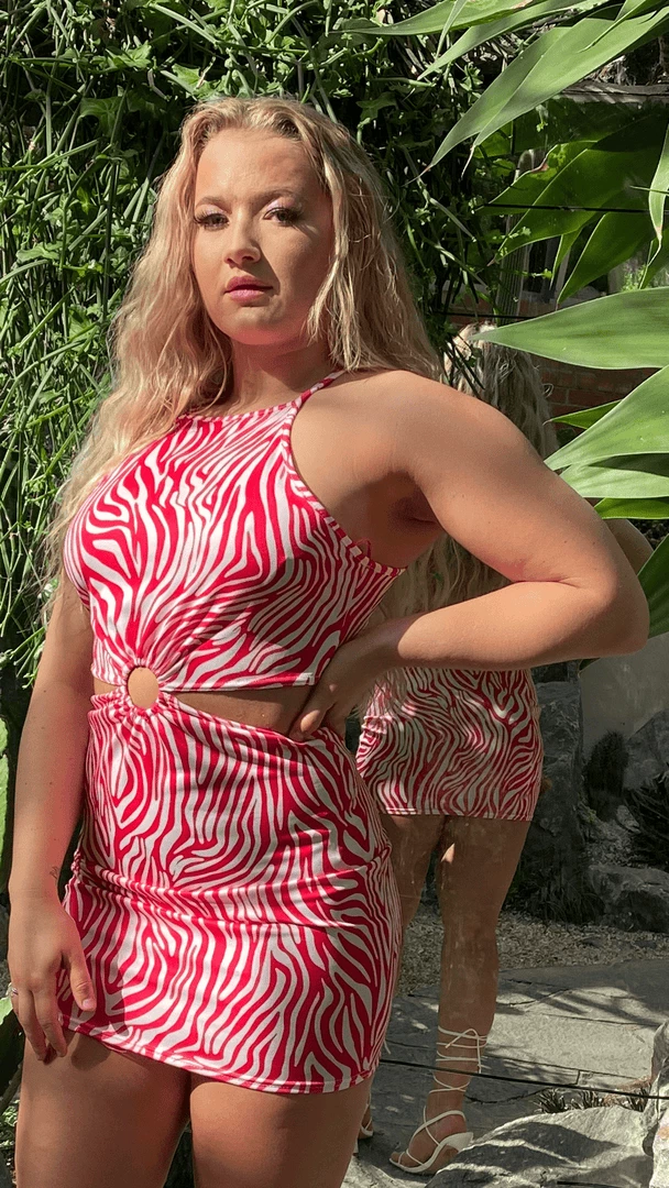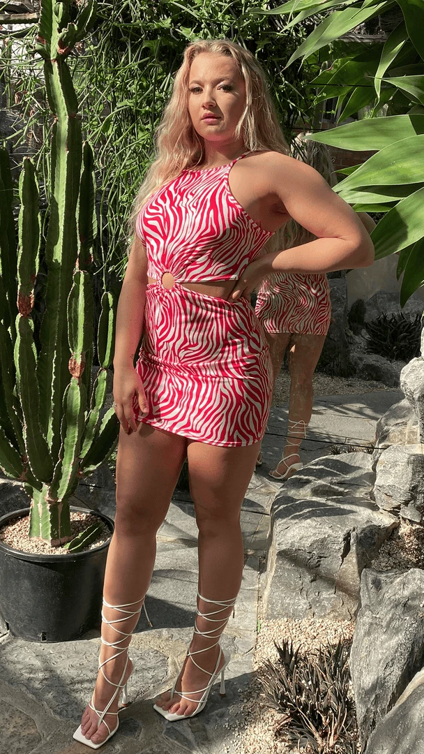 Show off your wild side in this Zebra Print Mini Dress. Complete with figure flattering cut out detailing + leg lengthening length – this dress screams summer ! Team with gold hoops + lace up heels for major style goals.