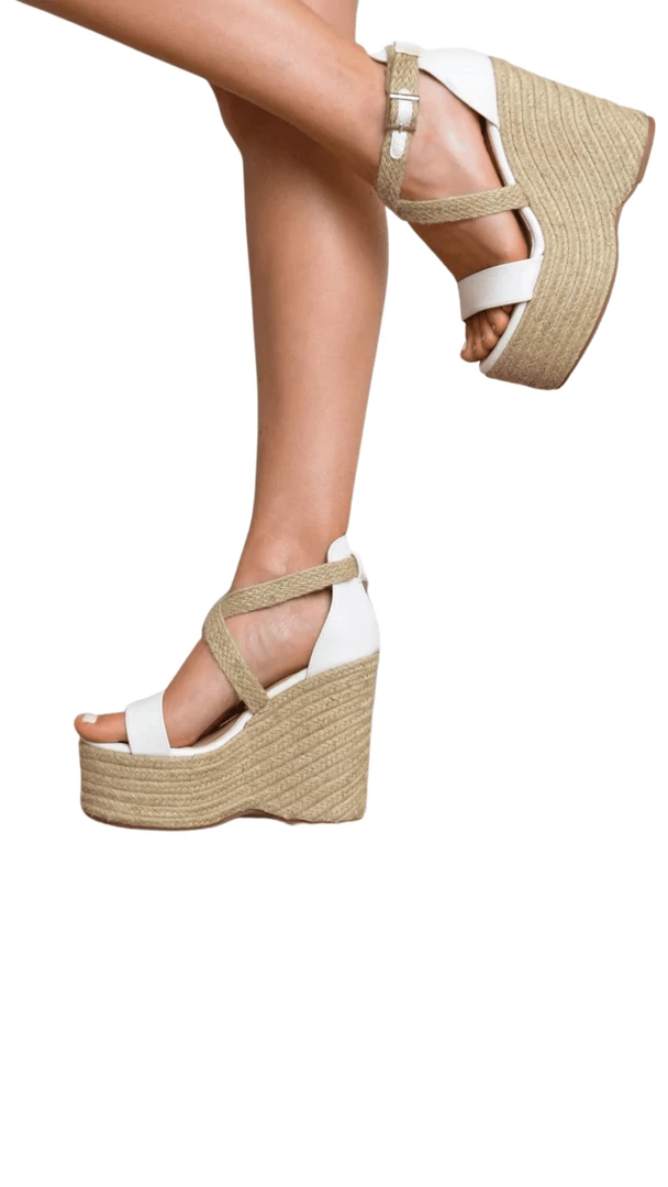 Add some height to your SS22 shoe game with these White Cross Strap Wedges. Pairing comfort + style – and leave you seeking some sun. Pair with your fav blue jeans + white crop or with your essential floaty dress… these shoes really do go with everything!