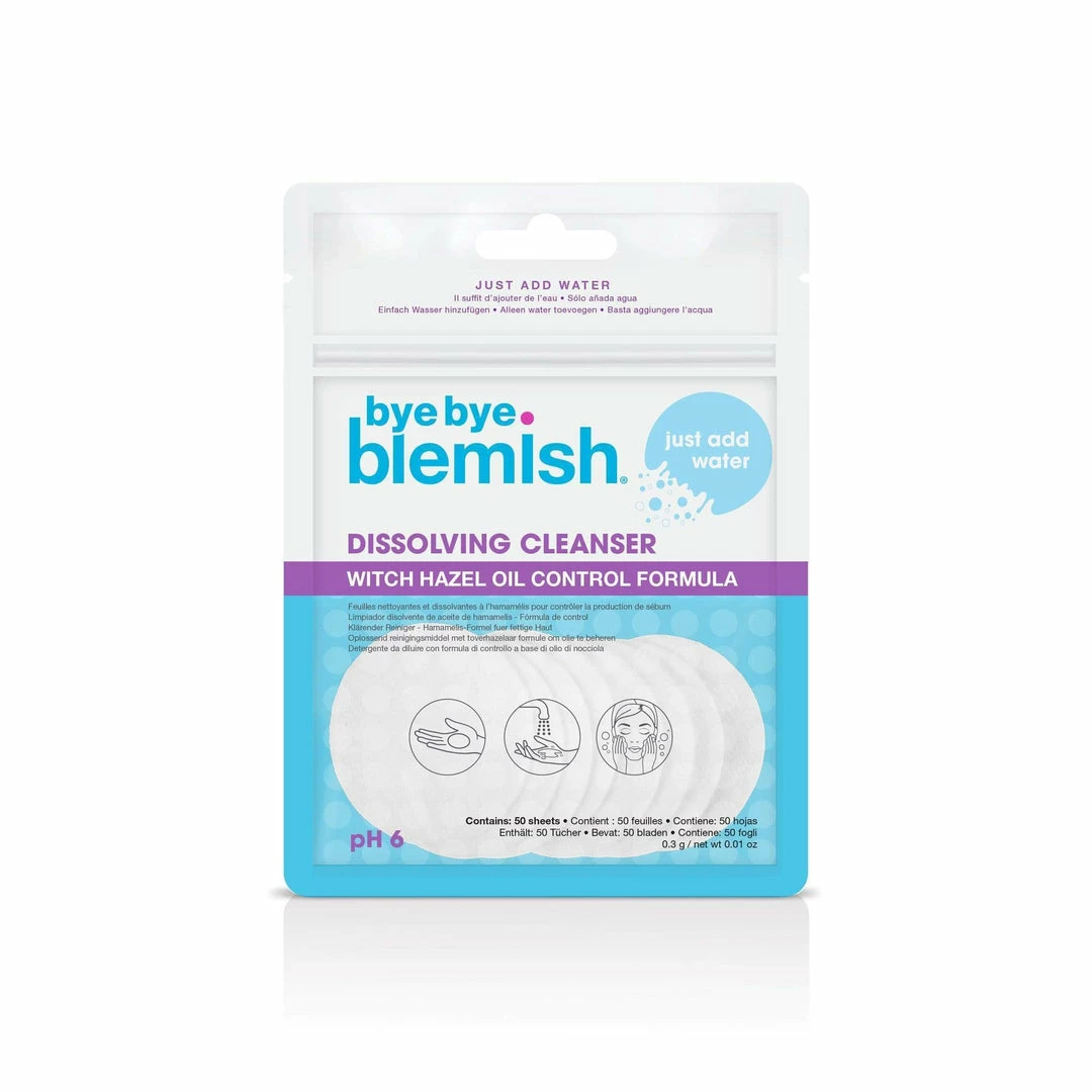 Banish breakouts with these Dissolving Cleansing Sheets from Bye Bye Blemish. Formulated to keep oily skin under control, in a fun and environmentally friendly way. Packed with plant-based ingredients to battle blemishes – they are a must-have for oily skin!
