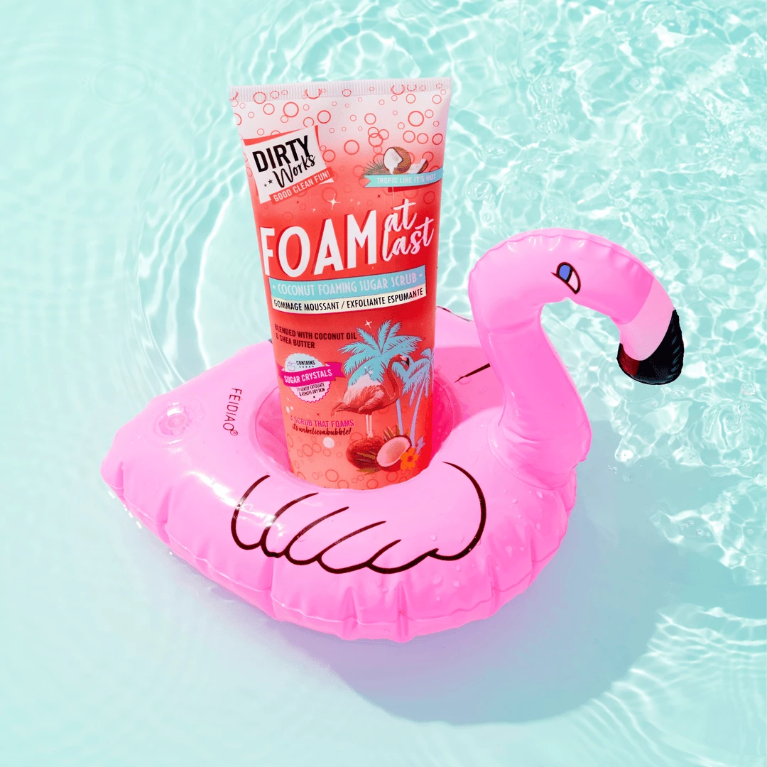 A body scrub that foams ? Unbelievabubble ! This Foam At Last Coconut Foaming Scrub from Dirty Works is formulated with sugar crystals to gently buff away dead skin cells – revealing the perfect base for your weekend glow up !